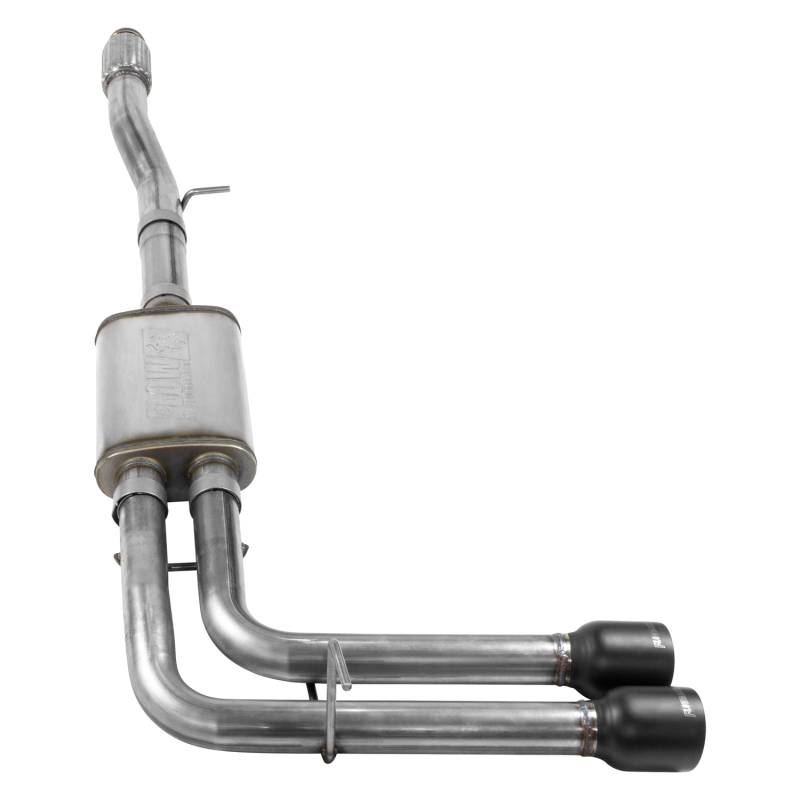 Introducing Flowmaster's new line of Flow FX Cat-back exhaust systems for the 2014-2019* (*Classic body) Chevrolet Silverado 1500 and GMC Sierra 1500 Crew Cab and Double Cab models with 4.3L and 5.3L engine. This Flow FX system is perfect for the person looking for a moderate to aggressive exterior and interior sound level with all of the performance benefits that you would expect from Flowmaster. Features include 409S stainless steel mandrel-bent tubing flowing into a Flow FX straight-through performance muffler for maximum power and a deep aggressive sound. The dual 2.50-inch tailpipes are finished off with large 4.00-inch black ceramic coated 304 stainless steel tips exiting in front of the rear passenger tire for that muscle truck look. Designed for easy installation, this system includes all necessary parts, hardware and detailed instructions.
