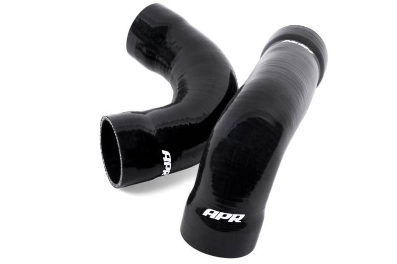 APR is pleased to present the ultimate boost hose upgrade for MQB platform vehicles with the 1.8T and 2.0T engines!\nThe APR Boost Hose System is a comprehensive, direct replacement upgrade, to the factory rubber hoses found in the charge piping system. The system includes a multitude of enhancements designed for maximum performance, longevity and insurance against power robbing boost leaks. The system is sold both as a complete kit, and individually, and is fully compatible with the OEM and upgraded APR Intercooler system, OEM throttle body and all OEM turbochargers.\nThis system includes both intercooler hoses.\nAPR's Engineers took a multi-step approach to optimizing the hoses to minimize boost leaks, reduce turbulence and other performance degradations. Four-ply silicone was utilized as it provides the thickness and strength characteristics necessary to support boost levels far beyond the engine's capabilities. A Fluorosilicone internal lining was added to ensure the hoses do not rapidly deteriorate over time when exposed to oil and gasoline from the PCV and EVAP systems. The included stainless-steel Clampco T-bolt clamps prevent the hoses from coming loose under heavy pressure and under high temperatures, silicone adheres to its mating surface, further minimizing leaks and hose slippage. APR's EZ-Flow stepped design creates a smooth airflow path, reducing turbulence over non-stepped designs. Finally, silicone provides better heat resistance over rubber, extending the life of the product and ultimate