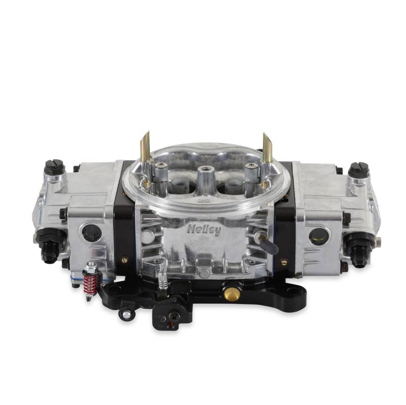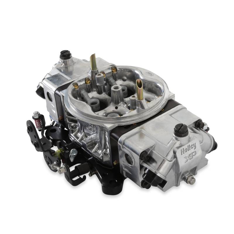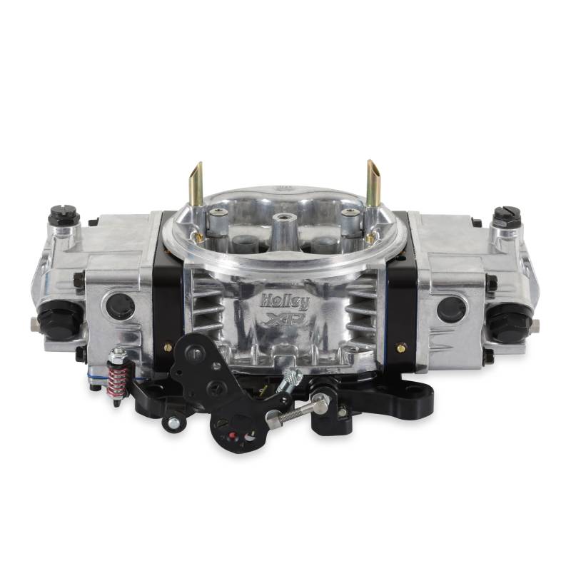 By popular demand, Holley is expanding the draw-thru supercharger carburetor line to now include the XP series. Like the existing HP line, these are available in 600, 750, and 950 CFM flow rates and standard polished with black accents. The feature-laden XP includes a contoured venturi inlet for balanced air flow, screw in air bleeds for precision tuning capabilities, high flow billet metering blocks, billet base plate, and Dominator style fuel bowls which allow plumbing from either side.\nSupercharger XP carburetors also have a unique capability that allows their power valves to reference the intake manifold vacuum below the supercharger. This allows the power valve to operate as it'should, based off intake manifold vacuum. A power valve provides further enrichment to the main metering system under load (low vacuum) conditions.\nHolley XP carburetors are the standard for square bore race carburetors. Race-Ready out of the box!