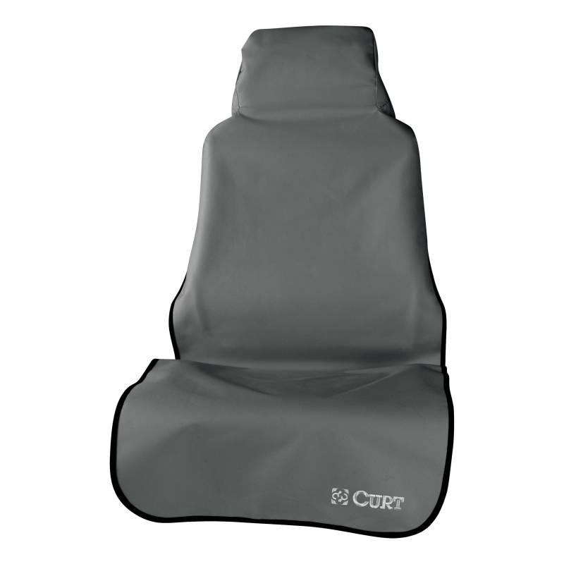 Seat Defender 58" x 23" Removable Waterproof Grey Bucket Seat Cover The CURT Seat Defender car seat cover is a universal, use-as-needed seat cover protection system that readily installs whenever you need it. It provides an instant defense against dirt, spills, pet dander and any other threats to your vehicle's interior. What makes it unique is its use-as-needed design. Rather than being a permanent cover-up for unsightly interior that has already been damaged, Seat Defender seat covers act as a barrier to prevent the damage before it happens. Unlike seat covers that require tedious installation, the Seat Defender is designed to be easy to put on and take off, whenever needed. It attaches securely to the headrest and conforms to the shape of the seat, giving the seat a tough, waterproof outer layer. CURT Seat Defender seat coverings are also easy to store and keep clean. Because it is not a permanent seat cover, it is designed for fast cleanup, fast foldup and fast installation the next time you need it. It easily protects against wet clothes, dirty tools, muddy sports equipment, shedding pets, sandy swimsuits, messy fast food and more. It is also 100% machine washable and can be stored in any small compartment in your vehicle. The CURT Seat Defender is made out of a two-sided material to provide a sophisticated barrier against potential threats. The underside is a layer of water-resistant thermoplastic rubber (TPR). TPR is durable and wear-resistant and provides added comfort and safety by gripping the surface of the seat. The top side is a woven 600-denier terylene fabric that keeps dirt and spills out and maintains comfort for the user. Seat Defenders are the perfect seat covers for cars, trucks, minivans, SUVs and more. They're great for pet owners, outdoor enthusiasts, sports lovers, industrial and commercial workers, frequenters of the beach or boat landing and many others. They also make great baby car seat covers! Use-as-needed, universal design with dual-layer, non-skid protection Fast and easy to install, remove, clean and store Thermoplastic rubber grips the seat, providing added comfort and safety Woven 600-denier terylene fabric blocks spills, dirt and more 100% waterproof and machine washable (air dry only)