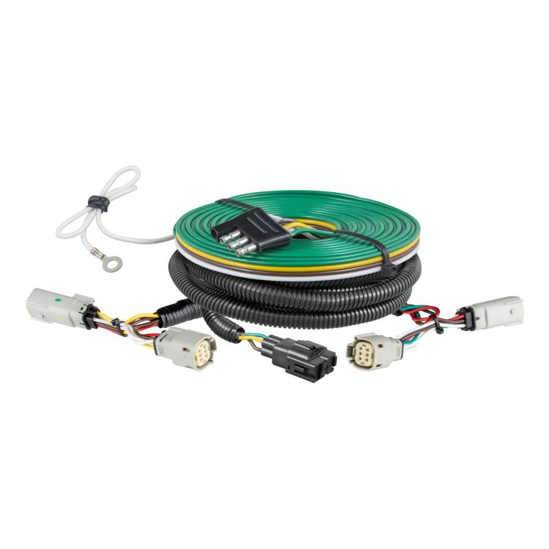 Towing your vehicle behind your RV is a great way to experience more of the adventure on your cross-country excursions. Whether youre towing a compact car or a full-size truck, CURT has the perfect solution to help you Bring It! CURT towed-vehicle RV harnesses are a vehicle-specific, plug-and-play solution to wiring your vehicle for dinghy towing. They use original-equipment-compatible connectors to plug into your vehicles wiring system without any cutting, splicing or soldering required. They provide a standard 4-way flat connector to plug into the RV socket and synchronize the vehicles tail lights, turn signals and brake lights with the RVs. Because each towed-vehicle RV harness has a vehicle-specific design, installation is fast and easy. This particular RV dinghy towing wiring harness is designed for specific years of the Lincoln Aviator (see application info to verify fitment). CURT RV harnesses are also built to provide long-lasting operation. They feature integrated block diodes that protect the vehicles circuits from the RV signals. They isolate the sensitive vehicle electronics, keeping them from overheating and short circuiting. Every CURT towed-vehicle RV harness comes ready to install with all necessary hardware included. They also come with a 4-way flat extension to provide plenty of length to plug into the RV socket, as well as a connector mounting bracket to mount the connector on the vehicle.