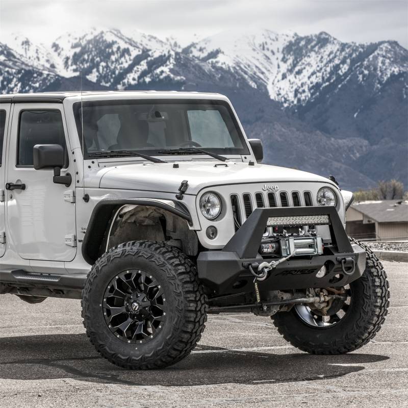 The ARIES TrailChaser Jeep bumper is unlike any other bumper for the Jeep Wrangler or Jeep Gladiator because it features a modular design. Each piece can be attached or swapped out as desired, giving you complete freedom of customization. This particular package includes the front-end corners only. These two corners are intended to be mounted on the TrailChaser front bumper center section (sold separately). They offer a professional finishing touch and can be drilled or cut to mount additional lights. They are also available with integrated, flush-mount LED lights. These corner end caps are constructed from T6 aluminum alloy to be strong, lightweight and rust-free, and have a unique, textured black powder coat finish for maximum corrosion resistance. They are also available in powder-coated steel.
