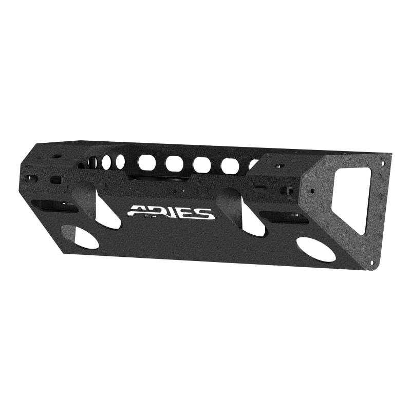 TrailChaser Jeep Wrangler JL, Gladiator Aluminum Front Bumper Center Section The ARIES TrailChaser Jeep bumper is unlike any other bumper for the Jeep Wrangler JL or Jeep Gladiator because it features a modular design. Each piece can be attached or swapped out as desired, giving you complete freedom of customization and a look that best characterizes your Jeep Wrangler. All TrailChaser bumpers are also compatible with a variety of accessories, including LED lights, D-rings, tow hooks and a winch. This particular piece includes the front-end center section only and is intended to accept corners and brush guards (sold separately). It is constructed from T6 aluminum alloy to be strong, lightweight and rust-free, and has a unique, textured black powder coat finish for maximum corrosion resistance. It is also available in high-strength, powder-coated steel. This bumper center section features a standard 22-1/2" x 7-3/4" winch housing and is compatible with the ARIES winch adapter #2072100 for larger winches. It provides cutouts for lights and has pre-drilled holes for D-rings #2081300 and tow hooks #15600TW (lights and accessories not included). All ARIES TrailChaser bumpers install using pre-existing factory mounting points for fast, easy installation with no drilling required. Modular pieces can be added or removed as desired to change the look any time Cutouts and mounting tabs for OE lights and aftermarket LEDs Hardened T6 aluminum construction to be strong, lightweight and rust-free Textured black powder coat easily hides minor scratches and grime Pre-drilled holes for anti-rattle D-rings #2081300 and tow hooks #15600TW