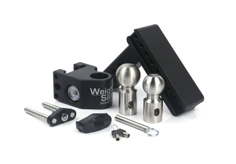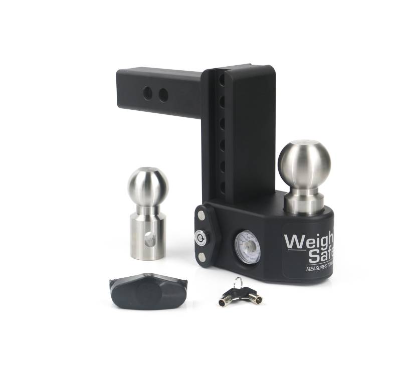 Steel Weigh Safe Adjustable Drop Hitch - 6" Drop & 2" Shank The Steel Weigh Safe Adjustable Ball Mount provides “Towing Peace of Mind” with a high-grade steel construction and stainless steel tow balls. This hitch boasts some of the highest ratings in the industry and can be used in both the drop and rise positions. Safe Towing: Built-in hydraulic scale measures tongue weight to ensure 10-15% of the gross trailer weight is on the tow ball. This prevents trailer sway and jackknifing to promote "Towing Peace of Mind." 6" Adjustable Ball Mount: 6” drop & 7" rise (hitch can be used in the drop or rise position), adjusts in 1" increments so you get the perfect position for any trailer height Industry Leading Weight Ratings: rated for 15,000 lbs. max GTW and 1,500 lbs. MTW in the drop or rise position Stowability: Can be rotated under the vehicle and stored while not in use Dual-Pin Lock: Includes an anti-theft lock to secure the hitch and maintain the tow ball in the correct height position