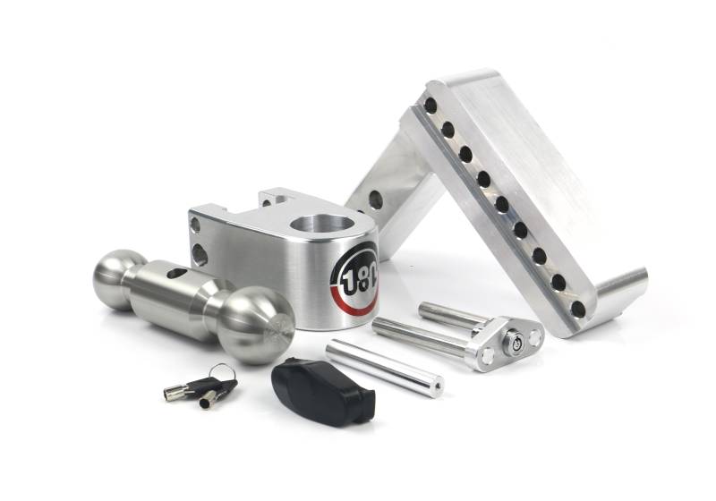 180 Hitch - Drop Hitch w/SS Combo Ball - 6" Drop for 2" Shank The 180 Hitch by Weigh Safe is the definition of adaptability and ease. Made of aircraft-grade 6061 aluminum, it's available in stainless steel or chrome-plated steel combo tow balls! This hitch can be used in both the drop and rise positions! Built-in gauge not available with this 180 Hitch model. Stainless Steel Combo Ball: Quickly switch from a 2-5/16" tow ball to a 2" tow ball by flipping the slider 180 degrees 6" Adjustable Ball Mount: 6” drop & 7" rise (hitch can be used in the drop or rise position), adjusts in 1" increments so you get the perfect position for any trailer height Industry Leading Weight Ratings: rated for 12,500 lbs. max GTW and 1,500 lbs. MTW in the drop or rise position Stowability: Can be rotated under the vehicle and stored while not in use. Excludes 3" shank sizes Dual-Pin Lock: Includes an anti-theft lock to secure the hitch and maintain the tow ball in the correct height position