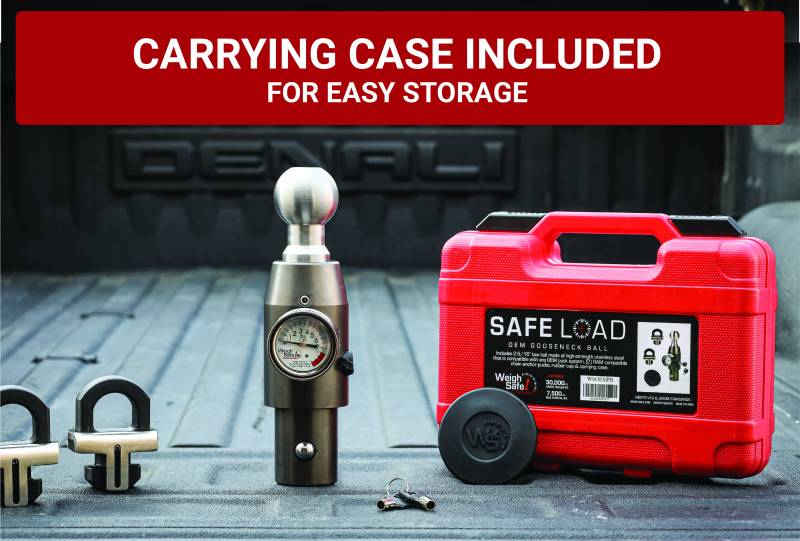 Safe Load OEM Gooseneck Ball w/ Universal Pucks 1. Includes a built-in scale that allow you to safely load and tow any trailers 2. Rated up to 30,000 lbs GTW 3. Made of High Quality Stainless Steel 4. Compatible with Ford, GM, Chevy, etc OEM Gooseneck Hitch Bed System 5. Includes Limited Lifetime Warranty