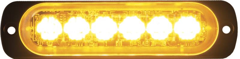 Buyers Products 6 LED amber horizontal strobe light. Can be synced for simultaneous or alternating flash patterns. Surface mounting is ideal for safety and warning applications.