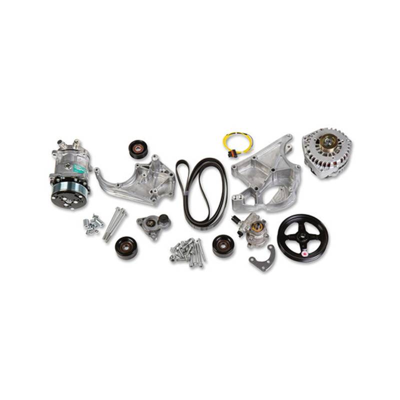 Now available from Holley are complete kits that have everything needed for the application including the belt. Included are accessories, pulleys, tensioner, and belt that are manufactured by OE part suppliers many of which are on production cars today.\nReplacement hardware kit is 97-171