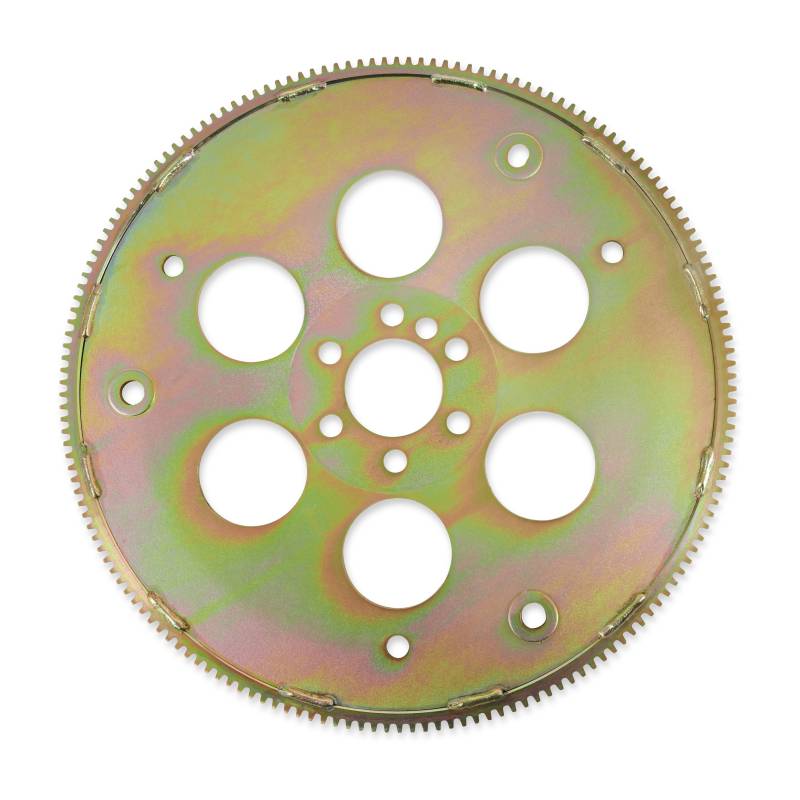 Constructed of thicker than stock steel plate to withstand the stress of high stall speed converters and high RPM engine Securely welded ring gear with dual bolt pattern for use with either Powerglide or Turbo-Hydromatic transmission Meets SFI specification 29.1 for racing Hays heavy-duty flexplates for high performance and competition engines are constructed of a thicker than stock steel plate, enabling them to withstand the stress of high-stall torque converters and high-RPM engines. While factory stock plates tend to crack around the crankshaft hub when punished under high torque and RPM conditions, the thicker Hays flexplate handles the force. These H.D. flexplates are supplied with a ring gear that is securely welded in place and feature dual bolt patterns for use with either a Powerglide or Turbo-Hydromatic torque converter. All Hays heavy-duty flexplates are zinc-dichromate plated to resist corrosion and are SFI certified under specification 29.1.