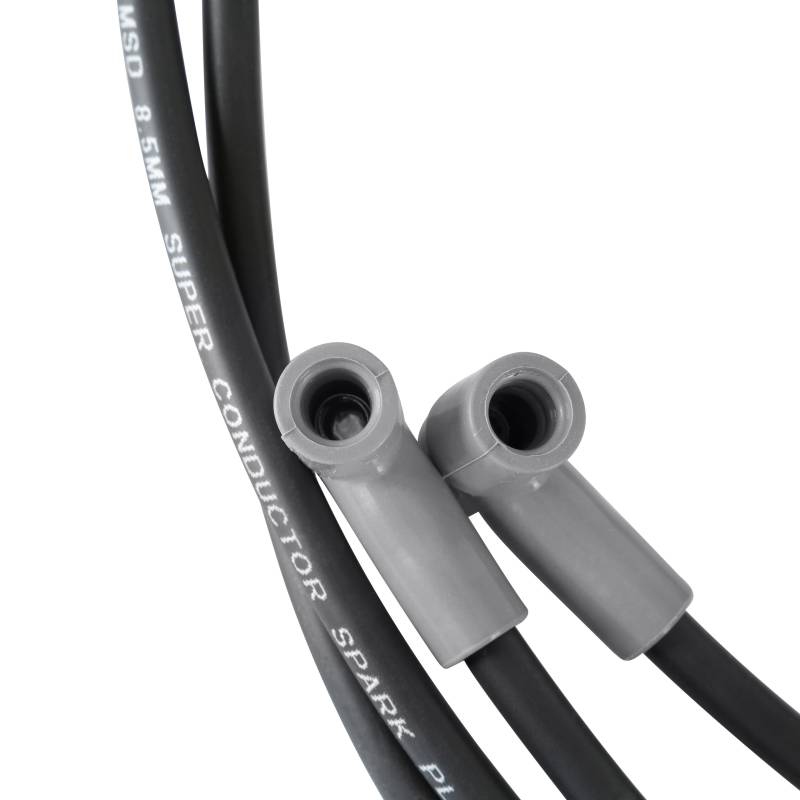 This combination is encased in a heavy duty sleeve that will withstand abrasion and high temperatures. Cap off each end with our Dual Crimp Terminals and you have the best wire available.\nThe MSD 8.5mm Super Conductor is the ultimate performance wire! Its extremely low-resistance combined with the ability to suppress Electro Magnetic Interference is a combination that defies the common laws of physics.\nLess resistance means more energy is going to make it to the spark plug to ignite the air/fuel mixture. The Super Conductor uses a copper alloy conductor resulting in less than 50 ohms per foot of wire! This ensures that the most energy possible makes it to the spark plug. By helically winding the conductor around a special core, we are able to produce a highly effective choke to keep the EMI inside the wire and away from other electronics.