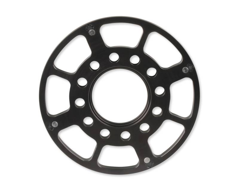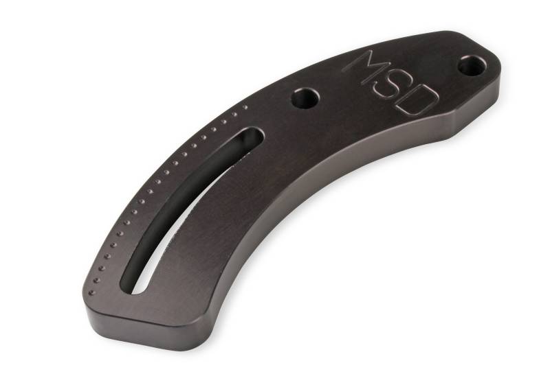 The MSD Flying Magnet Crank Trigger uses four magnets secured in the aluminum trigger wheel that pass by a stationary non-magnetic pick-up to trigger the ignition. This "flying magnet" design produces accurate trigger signals and the non-magnetic pick-up cannot be falsely triggered. Each Flying Magnet Crank Trigger includes a two-piece mounting bracket for the non-magnetic pick-up that in most cases will work on either the passenger side or driver's side of the engine (the SB Chrysler and SB Ford brackets mount on only one side). The CNC-machined aluminum bracket securely holds the pick-up in place and is slotted to provide a wide range of timing adjustments. Spacers are included so you can mount the bracket on engines with standard motor mounts or engines with a .25" motor plate. These systems will trigger MSD 6, 7, and 8 Series Ignitions and all MSD Timing Accessories.\nFor a long time, racers have known that one of the best things to do to an engine to improve performance is to stabilize the ignition timing. The MSD Flying Magnet Crank Trigger system does exactly that by using four magnets embedded in an aluminum wheel. Although similar in appearance to other crank triggers, the MSD Flying Magnet design works on a different principle. Most crank triggers have a wheel, with steel studs sticking out, bolted to the harmonic balancer. As the crankshaft turns, the studs pass by a stationary magnetic pick-up, triggering the ignition. This pick-up can be triggered by other bolts, debris, or even vibrations which will cause a loss of power or engine damage.