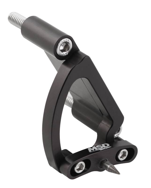 Complete your MSD ignition system with a precision adjustable timing pointer that is CNC-machined from 6061-T6 billet aluminum. Each pointer is fully machine-lightened for a great looking addition to any engine. The main body and adjustment assembly are black anodized for long-lasting corrosion protection. They are built to direct fit each application and various part numbers are available to fit multiple size balancers. MSD Timing Pointers are designed to work on Small Block Chevy, Big Block Chevy, and Small Block Ford engines and have a 4-degree range of movement for finding that precise timing location. Stainless steel hardware is included with each timing pointer.