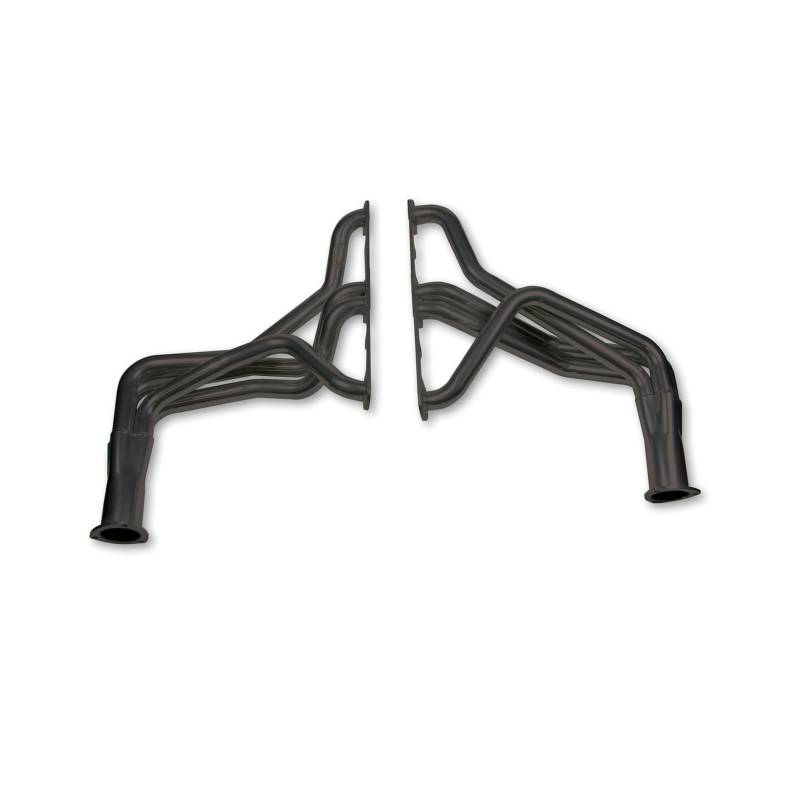 Hooker Competition headers offer the best value in the high performance header market. Designed for the value-conscious buyer, Hooker Competition headers offer premium features at a very competitive price.\nMade of durable 16 gauge mild steel tubing, the Hooker Competition header design utilizes a long transition collector to reduce back pressure and increase exhaust flow. A perfect sealing surface is assured with the 5/16" machined flanges, with welded O-ring seals. Experience has proven that this flange size is ideal to maintain header integrity and be pliable enough to seal each exhaust port. Tubing is mandrel-bent to maintain metal strength and provide consistent tube diameter at radii to maximize performance.\nHooker Competition headers have a standard finish that features a heat-cured, high-heat-resistant paint. Optionally, the famous Hooker Ceramic Thermal Barrier Coating is available.