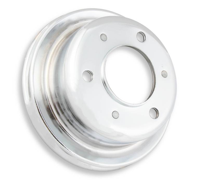 Replace your stock black engine pulleys with chrome plated steel pulleys from Mr. Gasket.