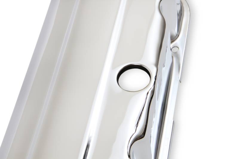 Chrome plated steel valve covers have a flat smooth top.