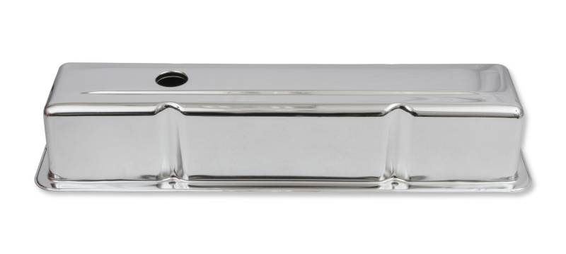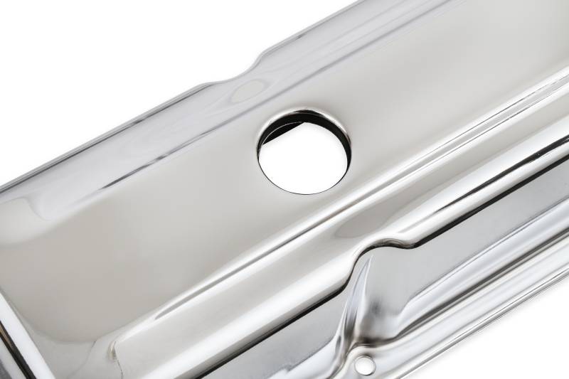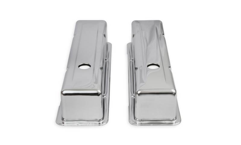 Chrome plated steel valve covers have a flat smooth top.