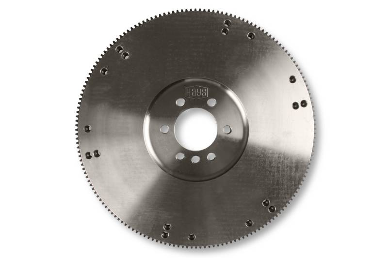 Hays steel flywheels are manufactured from certified billet material that will not break up under the stress of high RPM and severe punishment of racing. The 30 pound flywheel fits the 454 Chevy with 2 piece rear main seal and has 168 tooth ring gear. The flywheel is drilled for 10.5 in Borg & Beck or diaphragm and 11 in Borg & Beck, diaphragm or long style pressure plates. S.F.I. 1.1 certified. External engine balance. Other weights and applications available.