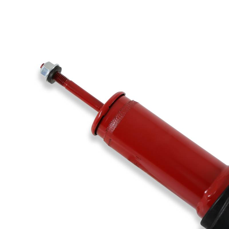 Lakewood front 90/10 shocks are for race applications only - supplies maximum weight transfer to the rear wheels with quick rise on the front end. Use on vehicles when maximum rear traction is required. Includes polyurethane bushing, chrome plated piston rod, anti-foaming hydraulic fluid, longer extension length than stock, 10 stage valve design and designed to mount in stock location.