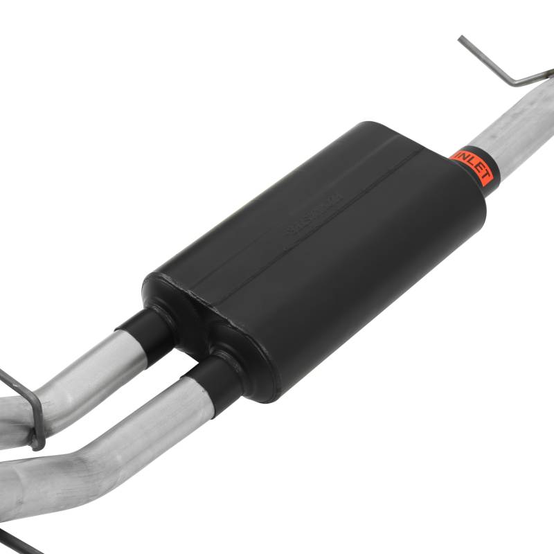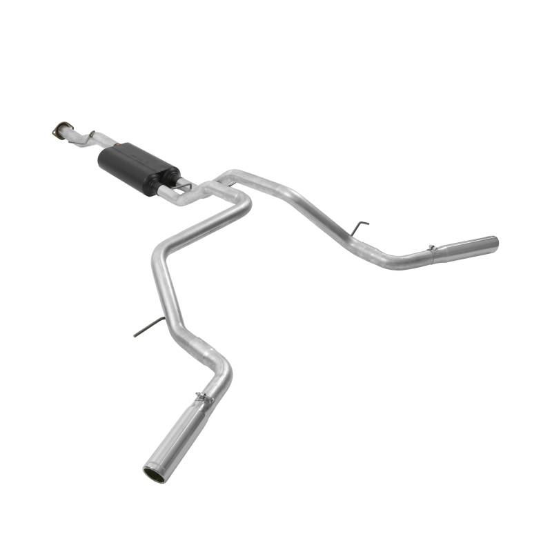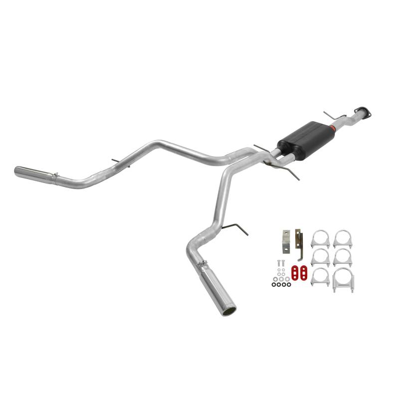 For the person who is looking for an aluminized steel cat-back exhaust system with an aggressive exterior tone and moderate interior tone. The American Thunder® system is heavy 16-gauge mandrel-bent aluminized steel tubing for durability and maximum performance. Includes a Super 50™ Series performance muffler for that perfect blend of a deep aggressive exterior sound, with a moderate interior tone that won't drive you out of the cab when having a conversation. The dual 2.50-inch tailpipes clear the factory spare tire, use the factory hanger locations and exit on the sides behind the rear wheels. The system is finished off with a pair of highly polished 3.00-inch 304 stainless steel tips embossed with the Flowmaster® name. Designed for an easy fit, these systems include all necessary parts, hardware and instructions for an easy installation you can do at home. Covered by our 3-year Limited Warranty.