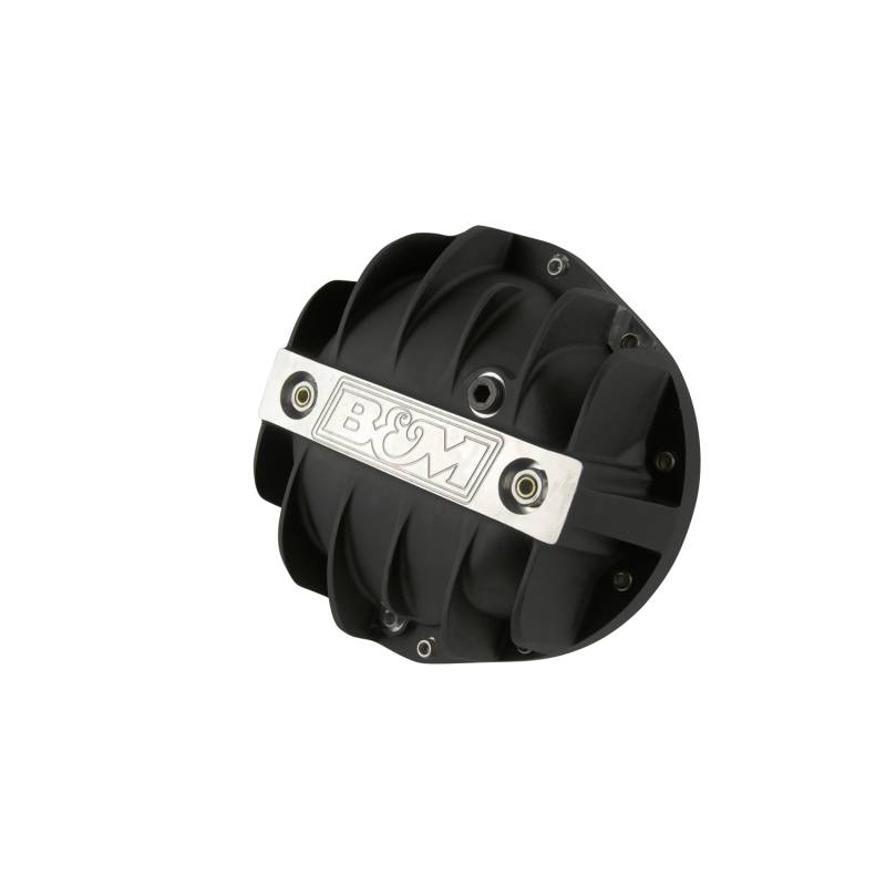 Our engineers designed the line of Hi-Tek differential covers to not only look good but address a number of weaknesses of the factory stamped steel covers. First, they started by constructing the covers of thick A356.0-T6 aluminum, which dissipates heat much faster than the factory steel unit keeping the fluid temperature lower under high-stress loads vs. a steel cover. Then for added durability, we added a reinforced center bar for extra strength along with load bolts to help prevent bearing cap deflection under severe loads. The internal shape of the cover retains the smooth round back internally to help keep the fluid flow going over the ring gear to properly lubricate and cool the bearings and ring & pinion gears. Additional features include a magnetic drain plug for catching ferrous metal particles, MIL-Spec (MIL-A-8625) black anodized finish, machined B&M logo, and all necessary hardware and easy to follow detailed instructions for a quick and simple installation you can do at home. Note: Gasket not included.