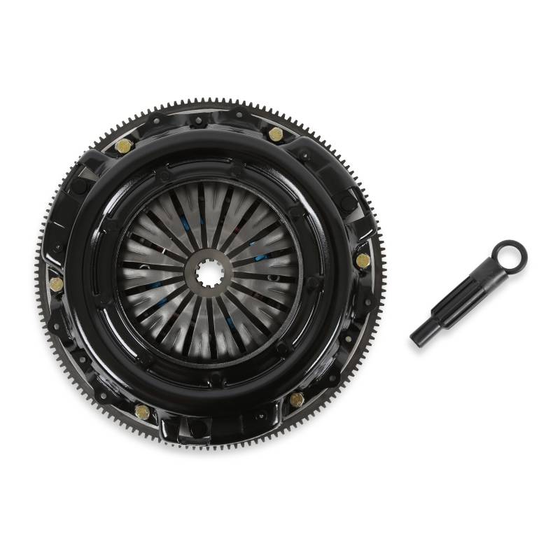 This Hays Hot Street Clutch kit fits 1965-1997 28oz external balance small block Ford engines. It offers ultimate Street/Strip performance through matched components. A 10.5-inch metallic disc with 6 spring helix sprung hub provides superior grip needed for the strip, while the matched diaphragm style pressure plate provides a pedal feel comfortable enough for the street. This provides 30% more clamping pressure and transmits that through a Billet steel flywheel. These matched components provide the peace of mind purchase you've come to expect over the years from Hays.