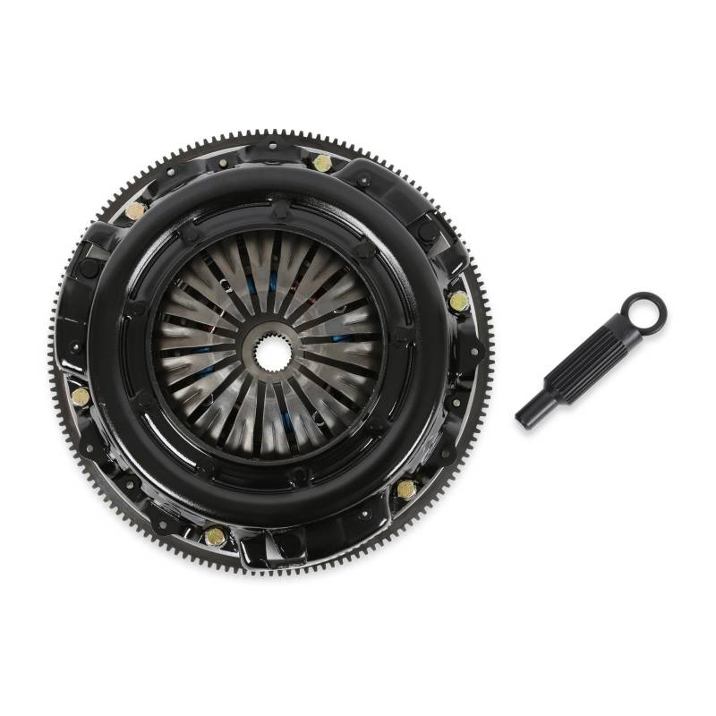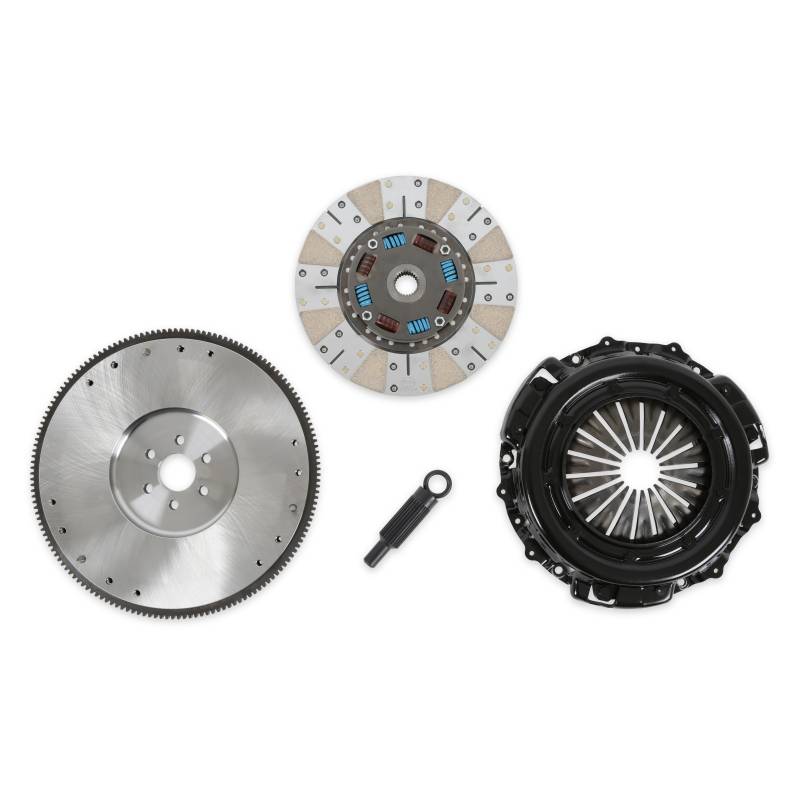 This Hays Hot Street Clutch kit fits 1982-1997 50oz external balance small block Ford engines. It offers ultimate Street/Strip performance through matched components. A 10.5-inch metallic disc with 6 spring helix sprung hub provides superior grip needed for the strip, while the matched diaphragm style pressure plate provides a pedal feel comfortable enough for the street. This provides 30% more clamping pressure and transmits that through a Billet steel flywheel. These matched components provide the peace of mind purchase you've come to expect over the years from Hays.