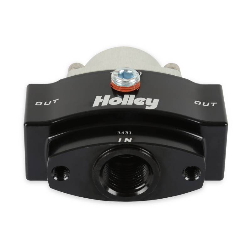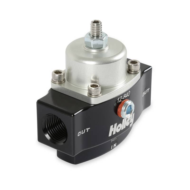 Holley Billet Bypass Style Fuel Pressure Regulator Kits are part of a complete line of fuel system products from Holley. The included 12-840 regulator features a billet aluminum body and a black finish for corrosion resistance and good looks. The regulator contains 3/8" NPT in/out ports, a 1/8" NPT gauge port. In addition, 3 Mr. Gasket 3/8" NPT to -6 AN fittings, a barbed fitting for the vacuum port, a mounting bracket, and all necessary hardware are also included.