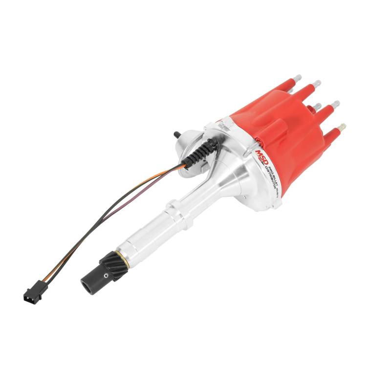 There is a big following of AMC enthusiasts that are cruising a 401 equipped Javelin or trail blazing in a rock crawling Jeep with an inline 6-cylinder! MSD offers a Pro-Billet Distributor to deliver accurate trigger signals and are maintenance-free!\nEach precision CNC-machined billet aluminum housing features a sealed ball-bearing and long sintered bushing for stability at any rpm and increased endurance. An oversized steel shaft receives a QPQ coating to reduce friction and prevent corrosion. Both distributors are supplied with a high quality cap, rotor and gear. There is even a vacuum advance canister for street cruising economy!\nUnder the brass terminal cap of each distributor is MSD's race proven magnetic pickup. This pickup never requires adjustment and simply plugs right into an MSD Ignition Control. Just above it and under our strong race rotor is an adjustable mechanical advance assembly. The chromoly weights of this assembly slide on nylon bushings producing smooth movement of the timing. You can easily adjust the curve to match your engine's requirements with the supplied springs and stop bushings.