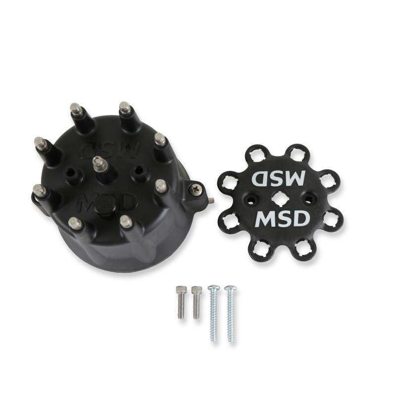 Replacement distributor cap for popular Chevy, Ford and Chrysler MSD distributors. This cap will also fit original GM points distributors.\nMSD molds our most popular V8 distributor caps in-house. These terminals offer improved locking connections and the Rynite material is extremely strong with excellent dielectric properties. Plus, most caps have an optional wire retainer that is supplied with these caps to lock the wires in place. If you are upgrading from a points socket style cap you will need to change your boots and terminals. MSD offers a set of nine as PN 8849.