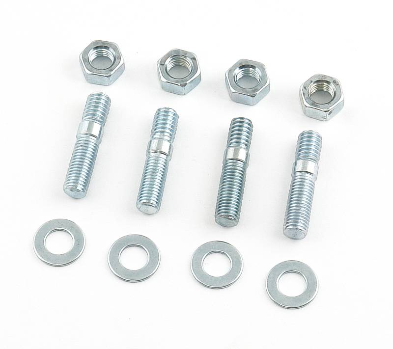 Mr. Gasket Short Carburetor Studs put an end to stripped-out threads in cast aluminum manifolds, holding the gasket in place and perfectly aligning the carburetor in position. Zinc-plated and 1-3/8 inch long, they have 5/16-18 threads on one end and 5/16-24 on the other, come in a package of four, and have four matching nuts and washers to complete the job.