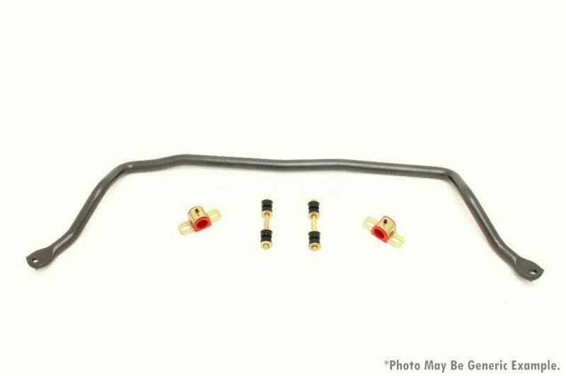 Sway Bar Kit With Bushings, Front, Solid 32mm, SS Design The two primary functions of sway bars are to control body roll and to determine the understeer or oversteer behavior of a vehicle. Stock sway bars have low torsional spring rates because they are manufactured from small diameter bar stock or tubing. BMR's suspensions SB006 front sway bar was designed by factoring in the vehicle weight, application, motion ratio, coil spring rate, and adjustability requirements. Manufactured from heavy-duty, solid 32mm bar stock, the SB006 is cold formed to better resist torsional fatigue and retain its "memory" far longer than the hot-formed bars used by many competitors. The sway bar is CNC-formed for exact manufacturing tolerances and repeatable high quality. The sway bar mounts to the car using polyurethane bushings. These bushings are molded from 88-durometer, low-deflection, polyurethane, and are internally fluted to keeps grease in the bushing. The steel sway bar mounting brackets are reinforced to minimize deflection.BMR's suspension designed the SB006 sway bar for street performance, autocross, and road race applications. The SB006 front sway bar gives you a 99% increase in sway bar rate. These rate increases and adjustability allow you to fine-tune the handling characteristics of your B-body so you can drive harder through corners with minimal body roll. The SB006 attaches to your B-body with 88-durometer polyurethane bushings, reducing the deflection from the stock rubber bushings. This allows for more sway bar control, and more control equals better handling. When performance is a must, rely on BMR's suspension!BMR's suspensions SB006 sway bars are available in black hammertone and red powdercoat for long-lasting good looks. Installation time is about 1-2 hours. Proudly made in the U.S.A.!Shipped complete with all required bushings and hardware.