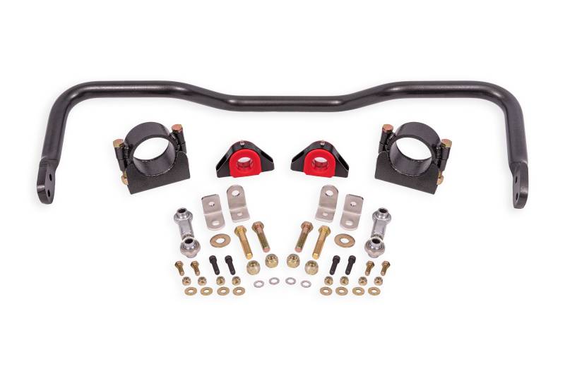 Xtreme Anti-roll Bar Kit, Rear, Solid 1.375", 3.25" Axles Hard launches from high horsepower cars at the drag strip require more than just a normal street-style sway bar. BMR's suspensions Xtreme Anti Roll Bar for 1964-1972 GM A-Body allows you to launch harder without excessive body roll limiting traction, with little sacrifice to youre a-bodys street manners. Manufactured from 1.375-inch solid bar stock, BMRs Xtreme Anti Roll Bar (XSB007) is designed to eliminate body roll and transfer as much power as possible to the rear wheels. The XSB007 attaches to your A-Body with polyurethane bushings. These bushings are molded from 88-durometer, low-deflection, polyurethane, and are internally fluted to keep grease in the bushing under high compression loads. BMR's suspension designed the XSB007 sway bar for street performance and drag race applications. The large adjustable sway bar has two positions, giving you the versatility to drive to and from the track with the same sway bar. The XSB007 gives you a massive increase in rate over the stock bar (depending on year and model). These rate increases and adjustability allow you to almost eliminate body roll so you can leave the starting line harder with maximum traction. When performance is a must, rely on BMR's suspension!BMR's suspensions XSB007 anti roll bar is available in black hammertone and red powdercoat for long-lasting good looks. Installation time is about 1-2 hours. Proudly made in the U.S.A.!