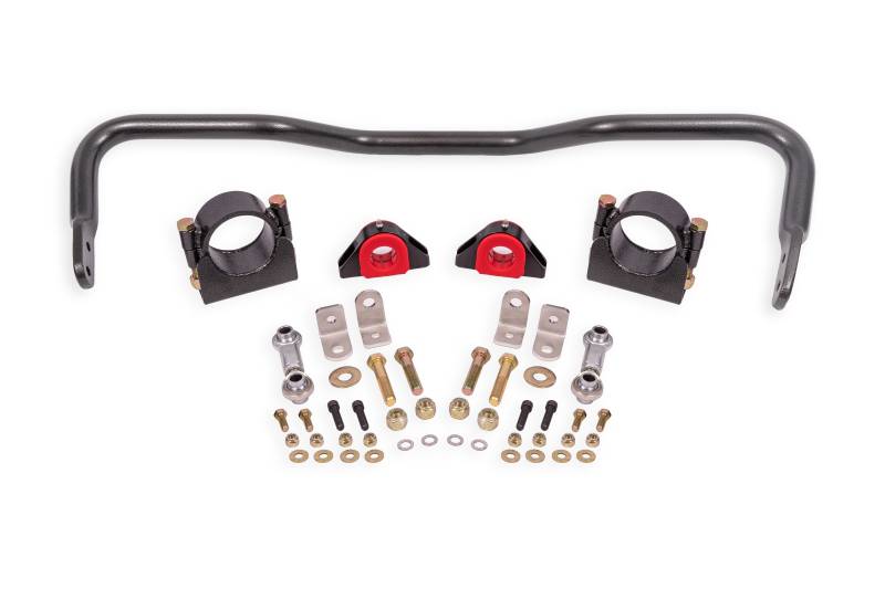 Xtreme Anti-roll Bar Kit, Rear, Solid 1.375", 3.25" Axles Hard launches from high horsepower cars at the drag strip require more than just a normal street-style sway bar. BMR's suspensions Xtreme Anti Roll Bar for 1978-1987 GM G-Body allows you to launch harder without excessive body roll limiting traction, with little sacrifice to your G-bodys street manners. Manufactured from 1.375-inch solid bar stock, BMRs Xtreme Anti Roll Bar (XSB010) is designed to eliminate body roll and transfer as much power as possible to the rear wheels. The XSB010 attaches to your G-Body with polyurethane bushings. These bushings are molded from 88-durometer, low-deflection, polyurethane, and are internally fluted to keep grease in the bushing under high compression loads. BMR's suspension designed the XSB010 sway bar for street performance and drag race applications. The large adjustable sway bar has two positions, giving you the versatility to drive to and from the track with the same sway bar. The XSB010 gives you a massive increase in rate over the stock bar (depending on year and model). These rate increases and adjustability allow you to almost eliminate body roll so you can leave the starting line harder with maximum traction. When performance is a must, rely on BMR's suspension!BMR's suspensions XSB010 anti roll bar is available in black hammertone and red powdercoat for long-lasting good looks. Installation time is about 1-2 hours. Proudly made in the U.S.A.!