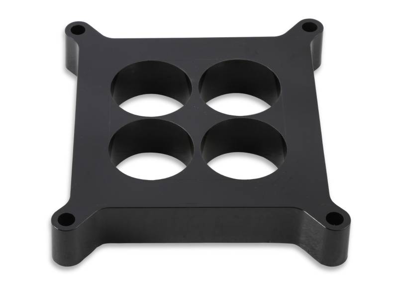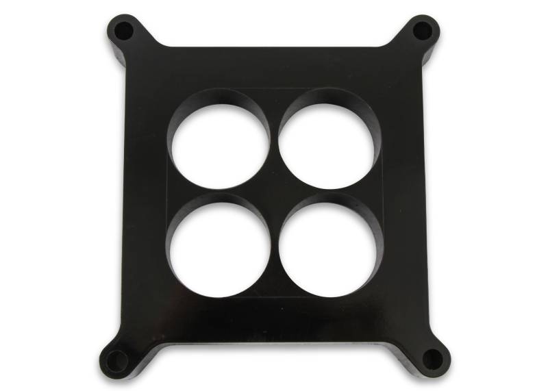 This 1 inch tall phenolic thermoset plastic spacer insulates your carburetor against manifold heat keeping it cooler and helps prevent fuel percolation (also known as vapor lock) in hot weather. This can also allow for a denser fuel mixure to help increase performance in some applications, as well as provide additional plenum volume. 4-hole design fits Holley 4150/4160 4-barrel carbs as well as most Carter and Edelbrock models with a squarebore design. Gasket, studs, washers and nuts are included.