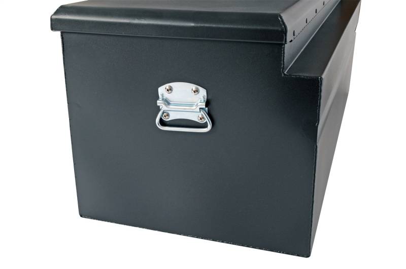 Dee Zee Tool Box - Hardware Series Utility Chest. Constructed of durable 20-gauge steel. Protected by texture black NRT (No Rust Technology) rust inhibitor powder coat finish. Crown style lid with a full pan double-V stiffener for superior rigidity. Convenient side handles for easy transport. Other features: lockable stainless steel paddle handles, dampened gas shocks, closed cell foam gasket, and self-adjusting strikers. Removable plastic tool tray to help keep small items organized.