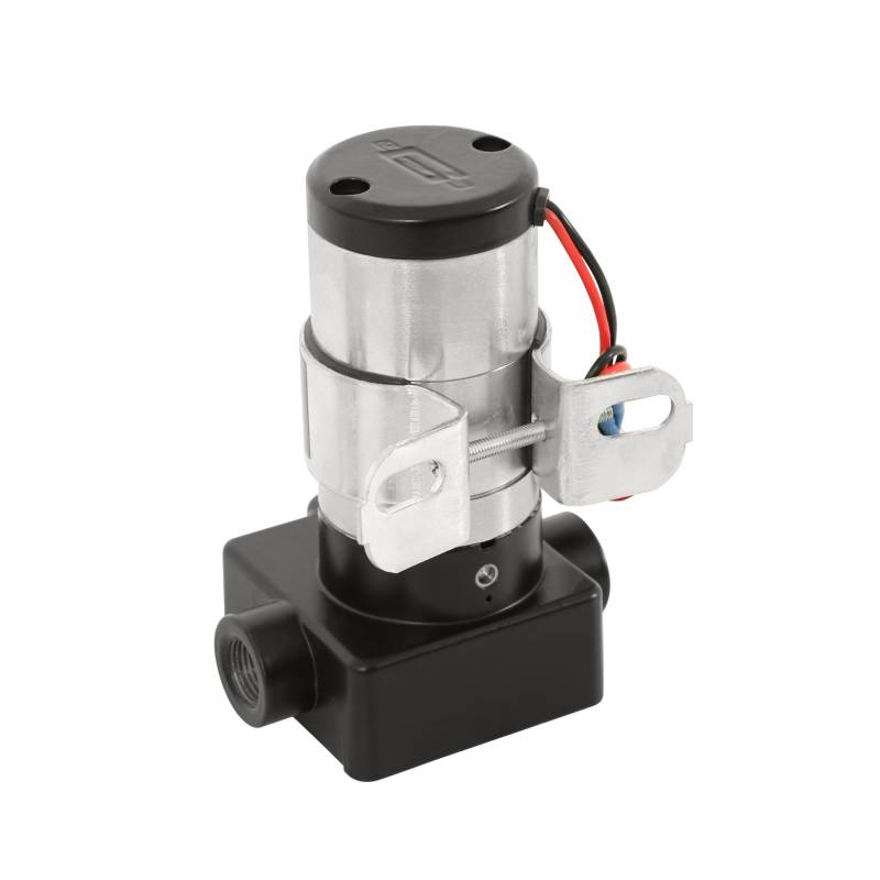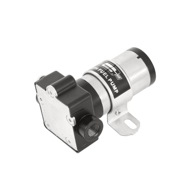 This high performance electric fuel pump has a free flow rate of 105 GPH (gallons per hour) with a maximum pressure of 14 psi (pounds per square inch). It is a gravity fed vane/rotor type high volume low pressure pump designed for street/strip applications. The operating fuel pressure is factory is set at 14 psi and is adjustable to as low as 4 through the included regulator. This pump must be used with included fuel pressure regulator. A 3/8 inch i.d. (inner diameter) hose is recomended with this fuel system. The fuel return line should be as large or larger than the fuel line between the fuel pump and the regulator. Free flows at 105 GPH and 70 GPH at 9 PSI.