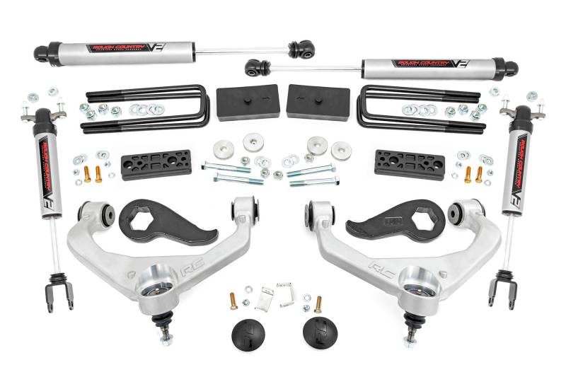 Take Your GM HD Higher: Transform your truck with Rough Country's 3-inch Bolt-On Lift Kit, delivering aggressive good looks, added clearance, and unbeatable performance at an incredible value. This kit is engineered specifically for GM HD models to provide a perfect blend of strength, drivability, and style.Engineered for Easy Installation: Featuring a 100% bolt-on installation, this kit requires no cutting, drilling, or special tools, making it one of the easiest lift kits to install on the market. The fully reversible design also lets you return your truck to stock height at any time without hassle.Unmatched Strength and Geometry: At the heart of this kit are high-articulation forged solid aluminum upper control arms. Built with a one-piece design to eliminate weak welded points, these arms deliver superior strength and durability. Optimized axle geometry is maintained through differential drop brackets, keeping driveline angles in check to reduce wear while extending long-term performance. POM ball joints come pre-installed for quicker setup and smoother articulation, with the option to upgrade to a bold red finish for added style.Premium Ride Quality: This kit includes a set of forged torsion bar keys for uncompromising rigidity, as well as Rough Country's nitrogen-charged N3 shocks for improved performance on and off-road. For those looking to push performance even further, this kit is compatible with all shock options, including Rough Country's premium Vertex reservoir shocks.All-Inclusive, All-Around Performance: With everything you need right out of the box, this lift kit provides the clearance to run larger tires while delivering a clean, leveled stance from front to rear. Backed by Rough Country's Limited Lifetime Replacement Warranty, this kit is the perfect choice for truck owners who demand strength, reliability, and a factory-quality ride at a fraction of the cost.
