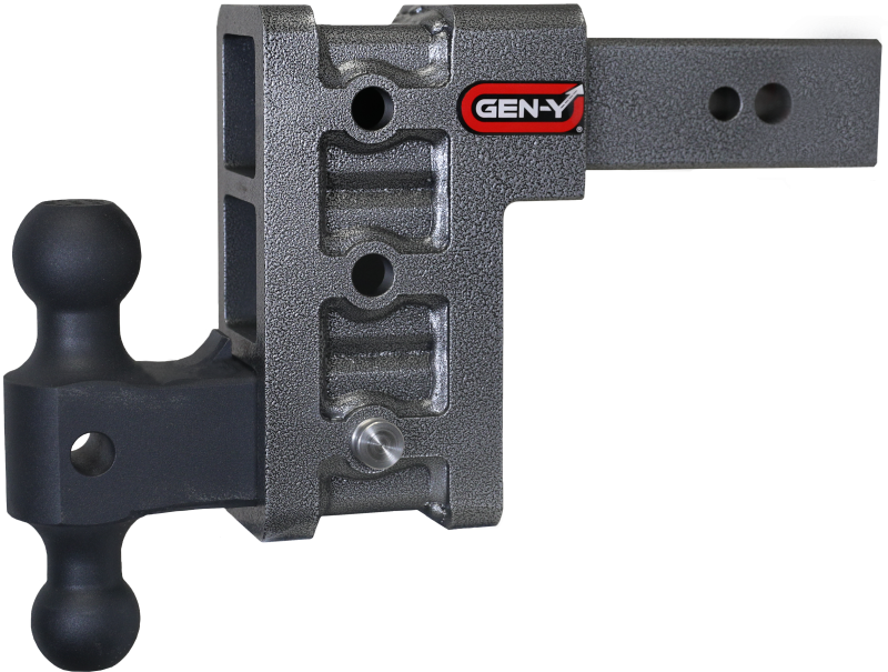 MEGA-DUTY Drop Hitch GEN-Y's Mega-Duty Adjustable Drop Hitches start at 10,000 LB towing capacity and go up to 32,000 LB towing capacity. There are multiple drop options as well depending on your trailer towing needs. Fully Adjustable Heavy Duty 3.5K Tongue Weight 32K Towing Capacity