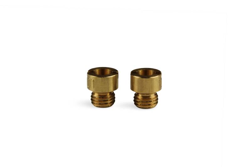 These metering orifices control fuel flow into the metering system. They are rated in flow capacity "cubic centimeters per minute" and are changeable for tuning purposes. The shape of the entry, exit, and size determines flow. All Holley Main jets are flow tested and then stamped with the correct number.\nClick on Catalog Product Page for complete listing of jets and sizes.