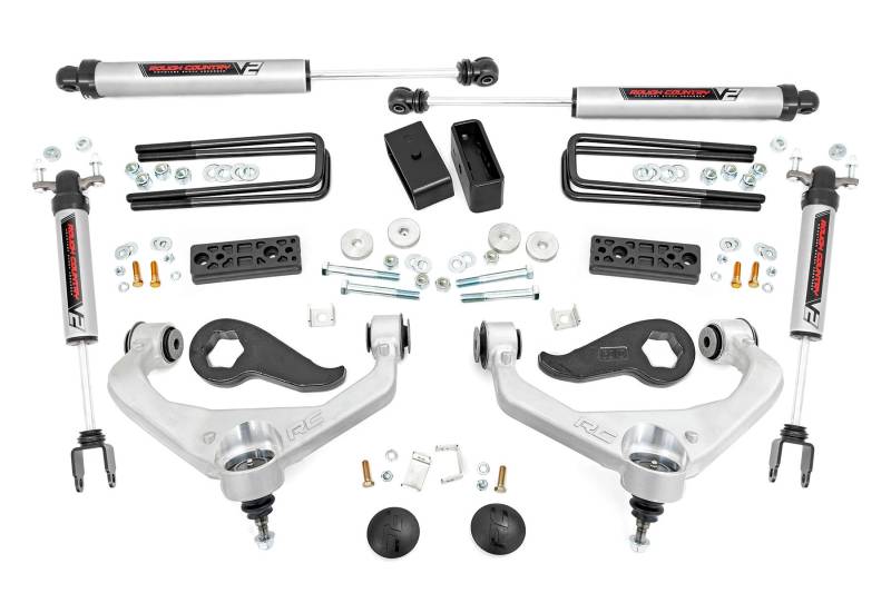 Improved Ground Clearance and Ride Quality. Take your workhorse to the next level with Rough Country's 3.5" Suspension Lift kit for dually models. Rough Country's 3.5" Suspension Lift kit provides an improved ground clearance and is designed for on or off-road driving. Take your truck to new heights with this excellent option for GM HD Models.\ \ Innovative Design and Construction. This kit features a set of high-quality, tubular Upper Control Arms with durable rubber bushings. These arms are designed to promote a factory-like geometry by keeping the ball joint at optimum angles after lifting. This design allows for an improved, full range of motion from the ball joint, with less stress, wear and tear. This kit also features a set of durable, forged torsion bar keys, offering uncompromising strength and rigidity over factory keys. A set of front and rear N3 nitrogen-charged shocks are also included in the kit, giving your truck incredible ride-quality both on and off-road. Once installed, this kit gives your truck plenty of ride height for up to larger tires while offering a clean, level look from front to rear.\ \ Installation.?áFeaturing a 100% bolt-on installation process, an estimated timeframe of 4-6 hours is predicted to complete the install. This full kit can be installed at home using standard tools and can be completed efficiently and quickly!\ \ Lifetime Replacement Warranty. Rough Country's 3.5" Suspension Lift Kit is backed with a lifetime replacement warranty towards manufacturer defects. As such, the product is protected from structural and workmanship damage after the date of purchase. With our industry-leading warranty give yourself peace of mind when using Rough Country's Suspension products!?á