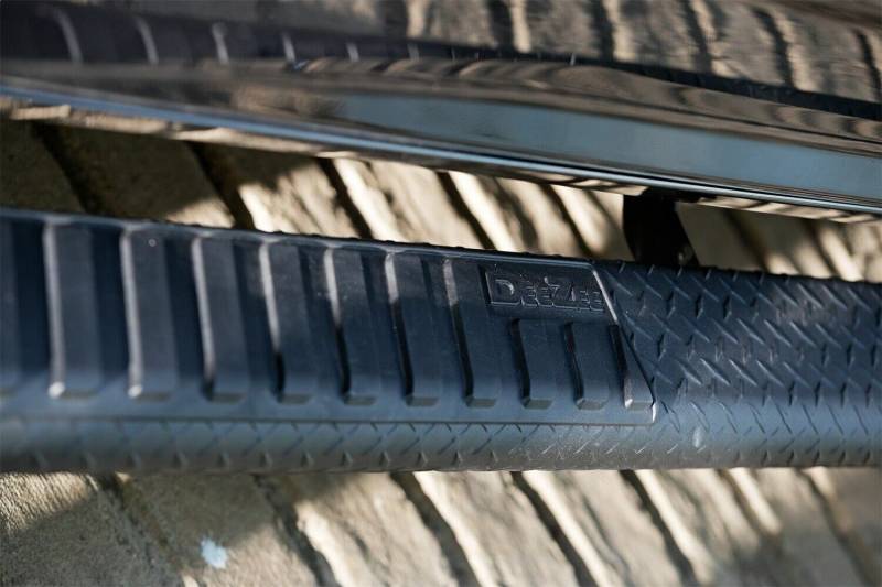Black-Tread Aluminum Side Step 6 in. Oval Cab Length Dee Zee Nerf Steps - A tubular side step for your vehicle. The universal step is combined with custom fit brackets (sold separately) to fit all listed applications. Dee Zee 6 in. step design gives you a beefy step to get into todays trucks. Constructed of heavy duty aluminum, the oval design features molded plastic end caps and step pads. The rugged step pads are embossed with the Dee Zee name and provide a non-slip surface. Protected by textured black NRT(TM) (No Rust Technology) powder coat finish. NRT(TM) is a specially developed coating to increase corrosion protection. Required custom fit bracket kits sold separately. Regular Cab - 6 in. x 51 in. Lightweight Aluminum Powder-Coat Frame Black Powder-Coated Top Plate Full-Length Black Powder-Coated Accent Trim Slip Resistant Grommets On Step Area Mounting Braces Not Included