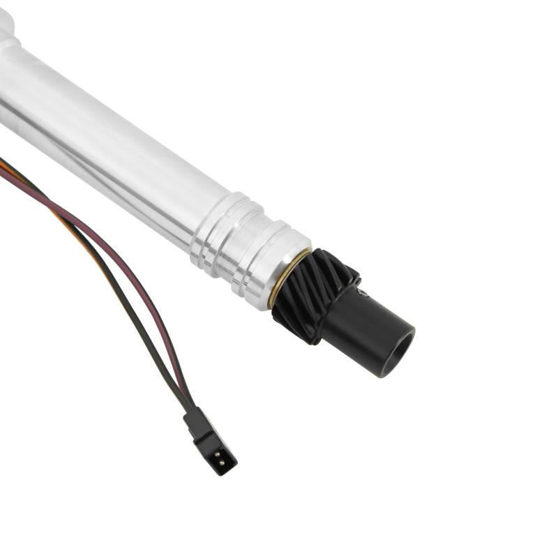 An adjustable mechanical advance assembly allows you to get the most performance out of your Vette's engine by custom tailoring a timing curve to fit your application.\nCorvette owners can now replace their worn out Magna-Pulse distributors with this precision Pro-Billet Tach Drive Distributor. Advantages such as an accurate magnetic pick-up, oversized shaft, vacuum advance and a billet aluminum housing are just a few of the MSD advantages.\nInside the billet housing, a sealed ball bearing and long sintered bushing guide a 0.500" steel shaft for high rpm accuracy. A special reluctor is mounted to this shaft and is responsible for triggering the magnetic pick-up.\nThe tach drive assembly is compact to clear the firewall and linkage. It can be repositioned easily to fit different applications plus has a grease fitting for lubrication.