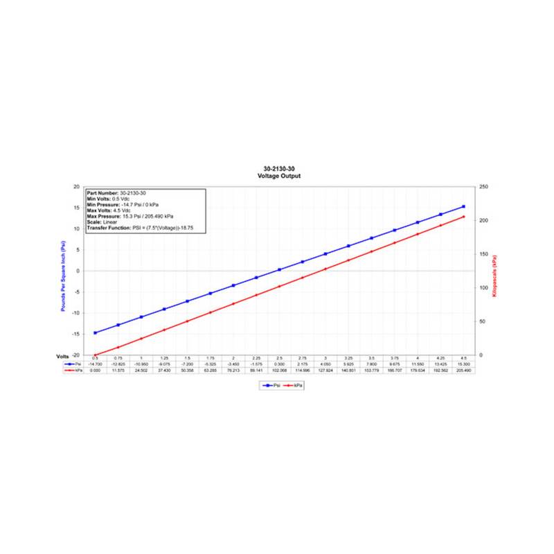 Absolute (PSIa) Pressure Sensors\nAEM offers high quality stainless steel PSIa sensors in 15 (1BAR), 30 (2BAR), 50 (3.5BAR), 75 (5BAR) and 100 (7BAR). PSIa is referenced to absolute zero. Absolute zero is the pressure measurement when all the pressure exerted by the atmosphere has been removed. The most common use for absolute pressure sensors is reading manifold pressure. PSIa pressure sensors are required if you wish to measure vacuum. A PSIa sensor will read about 14.7 PSI when the sensing element is exposed to atmospheric pressure at sea level however they can be recalibrated to read zero at atmospheric and a negative number at values less than atmospheric pressure.\nWhich Pressure Sensor is right for you?\nThere are many different tools that can be used for measurement, but the degree of accuracy is dependent upon the tool. For example, a ruler can measure distance with a good degree of accuracy, but for a more precise measurement a caliper should be used. The difference between a brass pressure sensor and a stainless steel pressure sensor is similar if we think about it in these terms:\nBrass Pressure Sensor = Ruler\nUse a Brass Pressure Sensor where you need a good reference to what pressure is being seen.\nExample: Brass Pressure Sensor used for a Boost Gauge - Reference/Information for knowing manifold pressure, not for ECU calibration.\nStainless Pressure Sensor = Caliper\nUse a SS Pressure Sensor where you need exact details of the pressure.\nExample: MAP Sensor information for the ECU - Calibration/crucial information for the ECU.