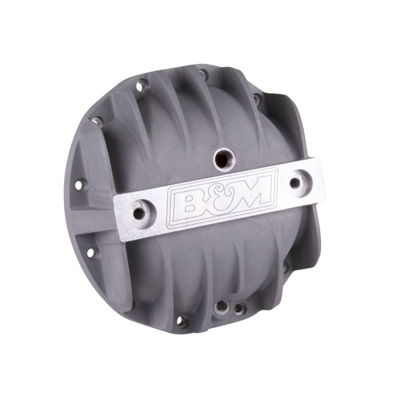 Our engineers designed the line of Hi-Tek differential covers to not only look good but address a number of weaknesses of the factory-stamped steel covers. First, they started by constructing the covers of thick A356.0-T6 aluminum, which dissipates heat much faster than the factory steel unit keeping the fluid temperature lower under high-stress loads vs. a steel cover. Then for added durability, we added a reinforced center bar for extra strength along with load bolts to help prevent bearing cap deflection under severe loads. The internal shape of the cover retains the smooth round back internally to help keep the fluid flow going over the ring gear to properly lubricate the gears and bearings. Additional features include a magnetic drain plug for catching ferrous metal particles, a machined B&M logo and all necessary hardware, and easy-to-follow detailed instructions for a quick and simple installation you can do at home. Note: Gasket not included