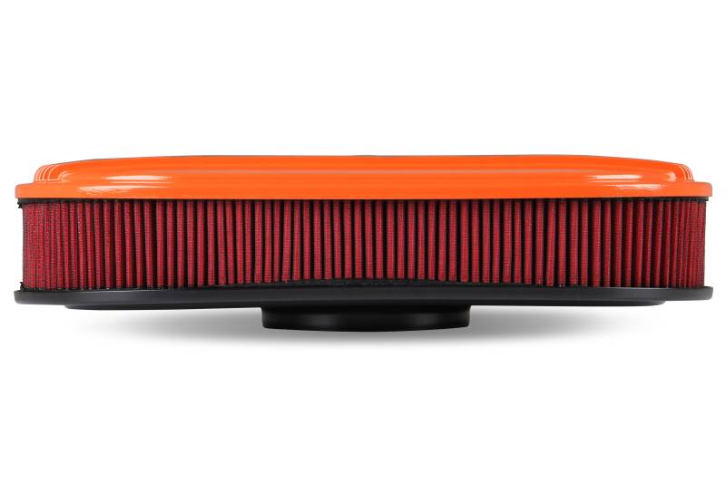 The oversized air cleaner look was king in the muscle car era, and we wanted to take engine bay styling back to that nostalgic time with these Holley Vintage Series Oval Air Cleaner assemblies. Each air cleaner assembly includes a durable cast aluminum Vintage Series finned lid, a stamped steel 1/2" raised baseplate, a 2.5" tall premium washable and reusable filter element, and all hardware needed for easy installation.\nThese oversized oval air cleaner assemblies dwarf the competition with their size - measuring at 17" long x 9" wide - which will make your engine bay stand out in a crowd of stale old oval air cleaners. The included stamped steel baseplate is designed to fit single 4-barrel carburetors with a standard 5-1/8" diameter neck, and the 1/2" raise is enough to clear throttle linkages, carburetor bowls, and distributors without any worry of interference. These oval air cleaners are available in 5 unique finish options to perfectly match most Holley Vintage Series valve covers, and paired together, their styling creates an unsurpassed vintage vibe.