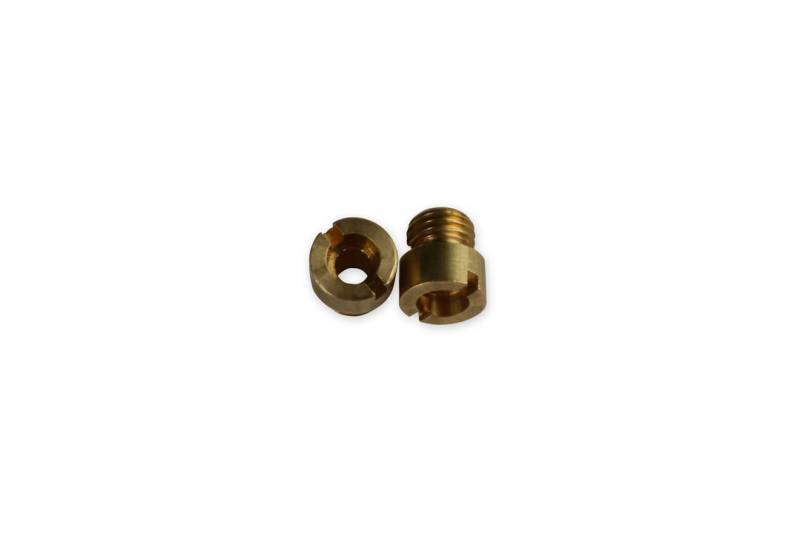 These metering orifices control fuel flow into the metering system. They are rated in flow capacity "cubic centimeters per minute" and are changeable for tuning purposes. The shape of the entry, exit, and size determines flow. All Holley Main jets are flow tested and then stamped with the correct number.\nClick on Catalog Product Page for complete listing of jets and sizes.