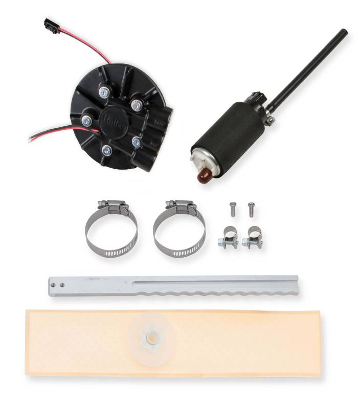 Are you interested in an EFI retrofit kit, but just can't get past the complication of the fuel system? Holley is proud to introduce their Universal In-Tank Retrofit Fuel Modules! Available in return and returnless versions, you can rest assured Holley has the solution you need for your EFI fuel pump woes.\nNow you can convert your factory tank or fuel cell to an in-tank EFI fuel system quickly and easily! And- add the benefits of a Holley Hydramat in the process! The conversion is easily accomplished with basic tools and requires no welding or fabrication. The aluminum module design includes a die cast pump hanger bracket to control pump vibration while also providing a low profile 5 inch diameter design to fit where space is at a premium. Holley's innovative clamping system and integrated fuel pump makes it easy. Once installed, hook up your fuel lines and your power source/ground and you're off and running! NO hassle!\nSupports up to 550 EFI or 700 Carb HP (@ 60 PSI at 13.5 Volts / 10.4 AMP Draw) Of course there are many variables, estimates are based on gasoline. Individual systems will vary based on fuel system design, regulator type, fuel cell location, etc...