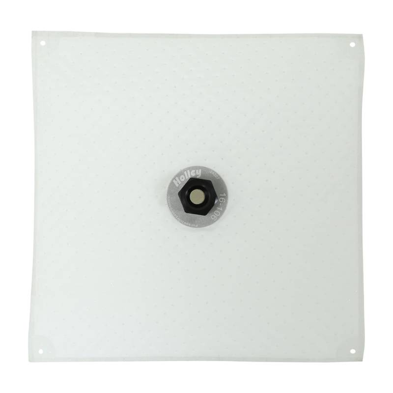 The amazing HydraMat® is Holley's patent pending design that solves the problems associated with traditional fuel pick-ups in stock fuel tanks as well as racing fuel cells. During hard cornering, acceleration, stopping, inclines, and low fuel conditions fuel runs away from the fuel pick up which introduces air into the system resulting in poor engine performance and even stalling. HydraMat is the solution!\nSurface tension and fluid wicking are the secrets of the HydraMat, giving it the amazing ability to draw from nearly any area that has contact with fuel and then store it in its internal reservoir. As an area of the HydraMat is uncovered, the tiny pores of the media seal off through surface tension, forcing fuel to be contained in the reservoir and drawn from other areas of the mat where fuel continues to be available. The sheer size and coverage area of the HydraMat allows it to pull fuel from virtually any area in the tank or cell eliminating the need for specialty reservoirs and pick up pumps saving cost and greatly reducing complexity.\nHydraMats are available in various sizes and shapes to fit a variety of stock fuel tanks and/or race fuel cells.