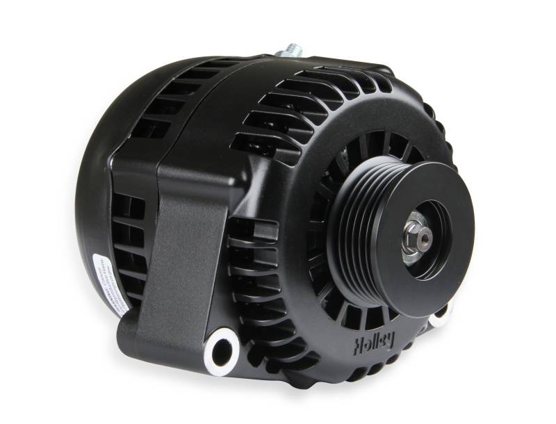With performance engines pushing redlines up higher and higher, alternators are being forced beyond their design. Holley's premium alternators are specially designed to tolerate 30% higher RPMs than conventional alternators and made in the USA. If you drag race, auto-cross, or just hot-rod your ride, know this alternator won't fly apart on you. Inside the attractive Holley housing is cutting edge technology. Every component was developed to produce cleaner, more efficient output compared to conventional alternators. Efficiency means you get more from a compact package. GM recently adopted this technology for the 2014 and later Corvettes. The attention to cosmetic detail on these units is above and beyond what you would expect too. The entire outside housing has been sculpted for a smooth silhouette that hides the ugly details we think of as alternators. The housings are smoothed to make polishing clean (no buffer cut marks trying to get in tight corners). Even the rear cover is aluminum so you lose that black plastic on your polished alternator. Available in Natural, black, and polished finishes. For that finishing touch, black pulley covers are available to give a simple but refined look on the 197-302 and 197-303. The 197-304 polished alternator already includes a polished cover. These powerhouses fit ALL Holley accessory brackets, as well as 4th generation F-body, most 1998 thru 2004 GM trucks, and many other applications.