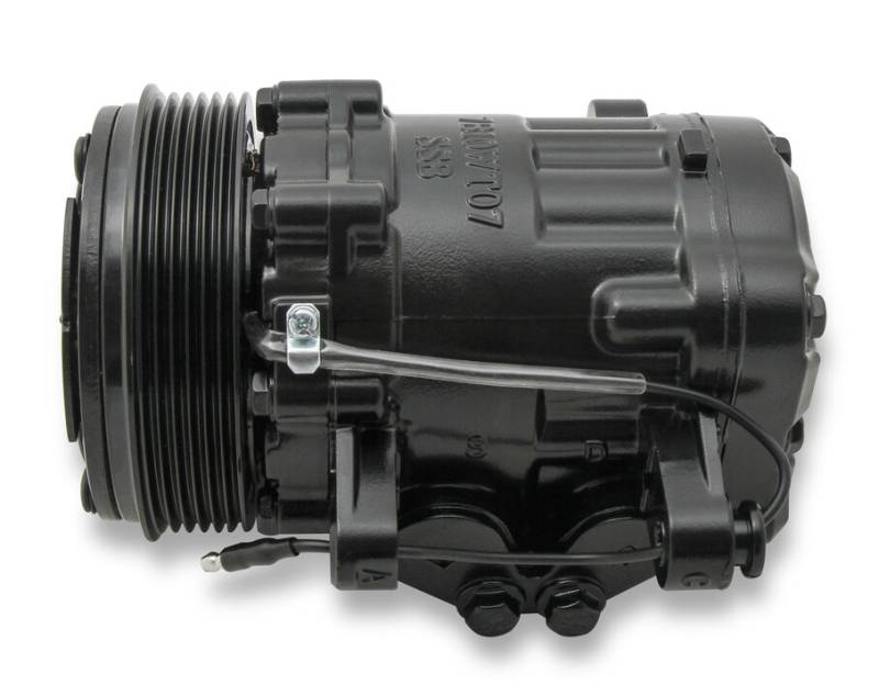 Black SD7 is the compact high performer of the Holley compressors. It tolerates bursts of higher RPM better than other compressors and has a light weight clean design. This also is an OE manufactured compressor. (Sanden)